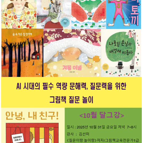 그림책교육전문가되기 1, 2, 3과정을 2025년 11월 개강합니다.각 과정 요일별로 나누어 개강 합니다~^^그림책교육전문가되기 1(기본)과정: 11월 4일 화..